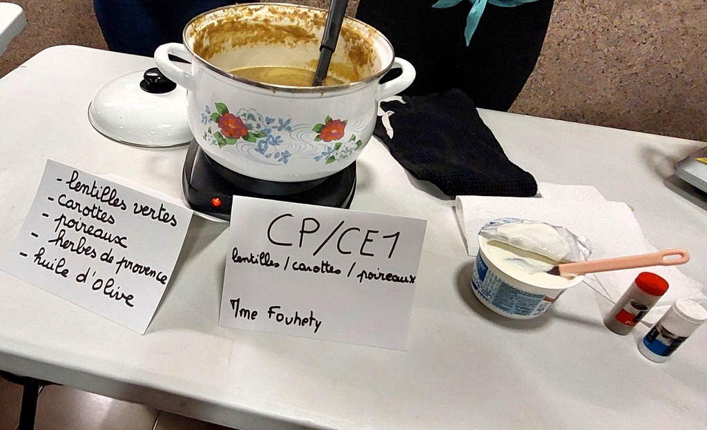 Le moment est ensuite venu de goûter les délicieuses soupes élaborées par chaque classe, de la préparation des légumes à la cuisson. Moyennant trois euros, on pouvait consommer autant de soupes qu’on le voulait, et on ne s’en privait pas. Des assiettes de charcuterie et de fromage étaient également proposées pour les gros appétits.