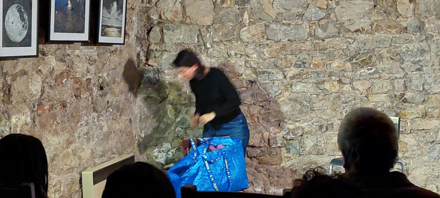 Vendredi 17 novembre, la petite salle de l’Entracte’Café a accueilli Sarah Murmur dans un spectacle « seule-en-scène ». Dans une ambiance intimiste, les spectatrices et les spectateurs ont été transportés vers des instants particuliers de la vie de quelques femmes : la fin de l’enfance, une rupture, une maternité … Avec, à chaque fois, la même question en filigrane : que nous reste-t-il lorsque nous venons de perdre tout un pan de notre vie ? Ce texte, mêlant récit, danse et philosophie dans une scénographie sobre, a su toucher par sa poésie.