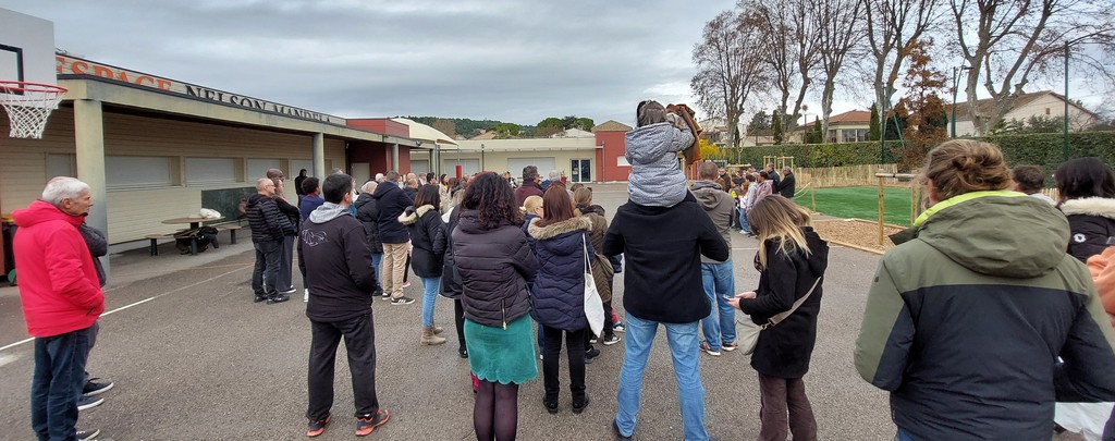 Samedi,06 décembre 2025, les élèves, les parents, et les amis de l’école se sont réunis nombreux autour du Maire de Nébian et de son Conseil Municipal pour fêter la réalisation d’un projet qui leur tenait à cœur : la désimperméabilisation des cours de l’école Yvette Marty, et l’ensemble des aménagements qui l’ont accompagnée.