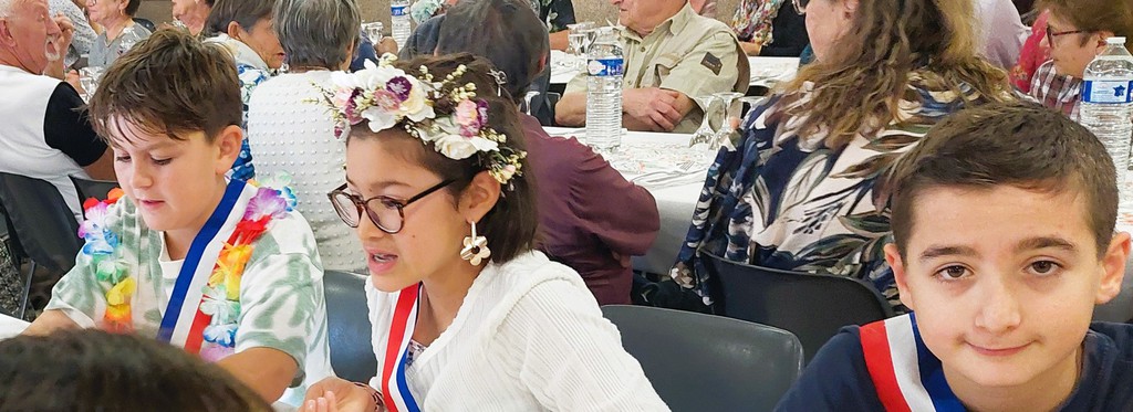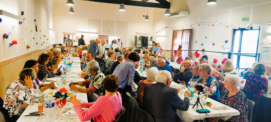 Le Maire Francis Bardeau a remercié tous ceux qui se sont impliqués pour que ce repas soit une réussite : les membres du CCAS Marie L’Hélias, Dorothée Finart et Mathieu Lombard, mais aussi le Conseil Municipal des Jeunes, qui a magnifiquement décoré la salle, sans oublier les deux conseillers en charge du CMJ. Cédric Sander a pris la parole pour remercier les sponsors et tous ceux qui ont aidé à la préparation de cette journée, que ce soit sur la plan logistique ou sur le plan matériel. Il a insisté sur l’importance des rencontres intergénérationnelles si enrichissantes pour tous. Chacun des membres du CMJ a lu ensuite un petit texte pour des remerciements ciblés, suscitant de nombreux applaudissements. Enfin Dorothée Finart a expliqué à travers un texte sensible et plein de poésie la signification du thème choisi pour le repas de cette année : la fleur.