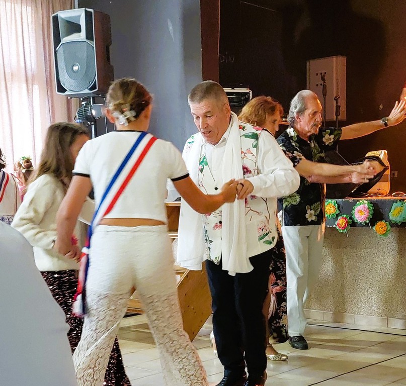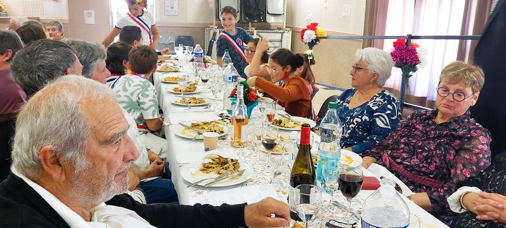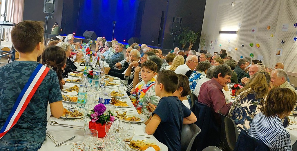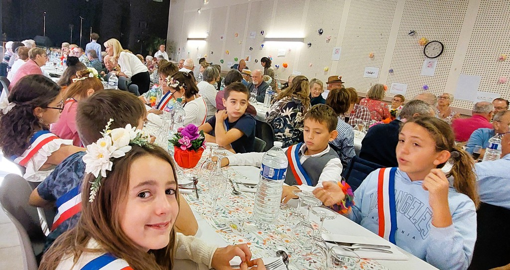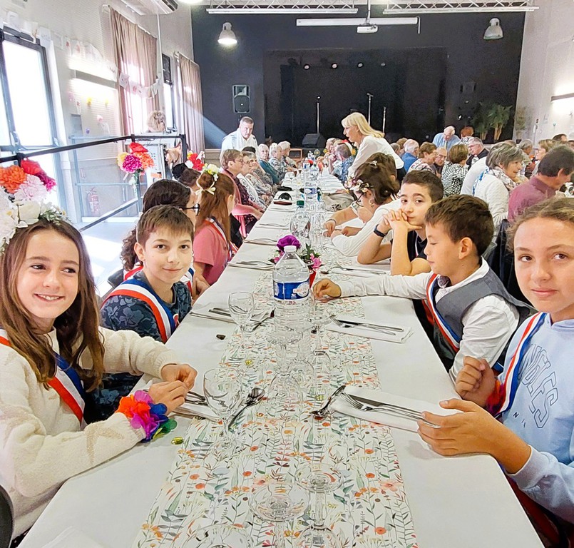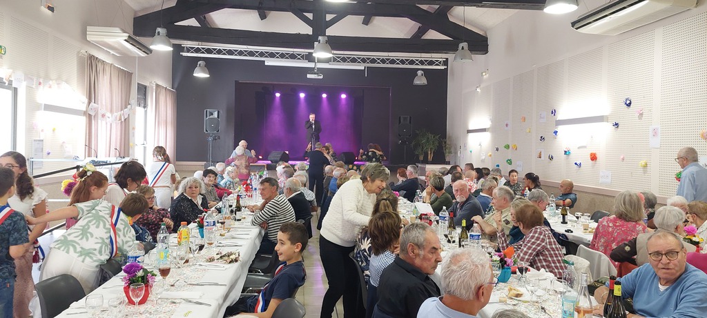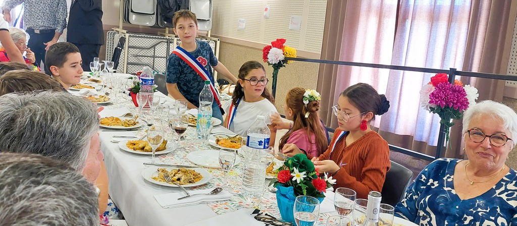 Dès le début du repas, et pour le plaisir de tous, l’orchestre Franck-M a régalé les convives avec des chansons magnifiquement interprétées ; très vite beaucoup de participants ont quitté leur table pour danser. Juste avant le dessert, le CMJ a présenté une danse qui a été très applaudie. Puis la piste a de nouveau été envahie par les danseurs qui ont été rejoints avec un plaisir évident par les jeunes du conseil municipal.
