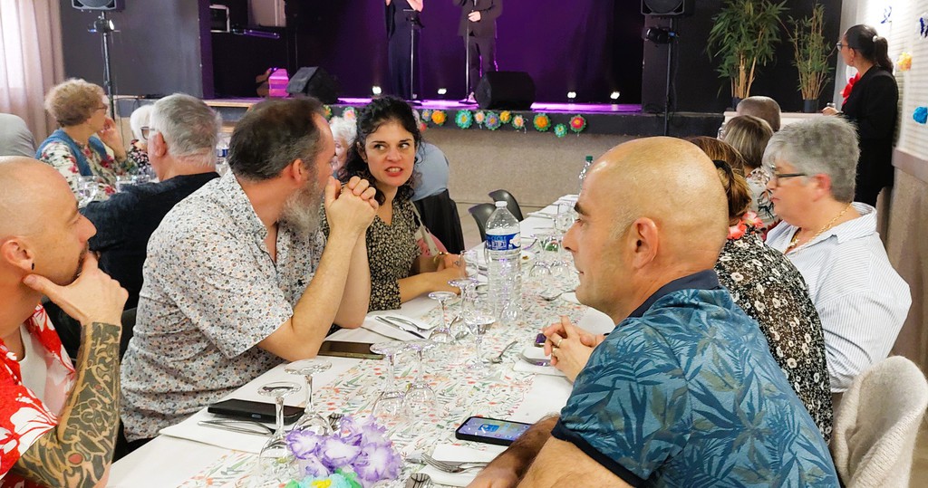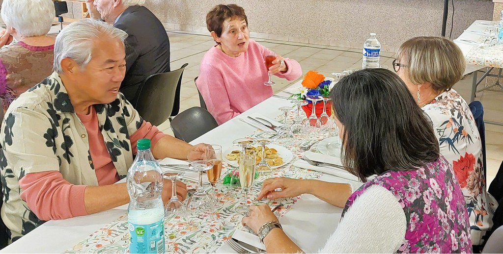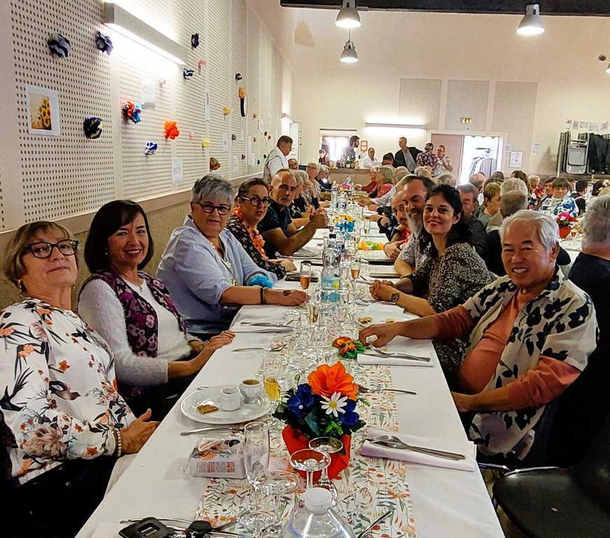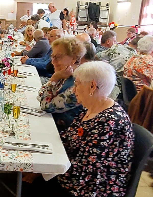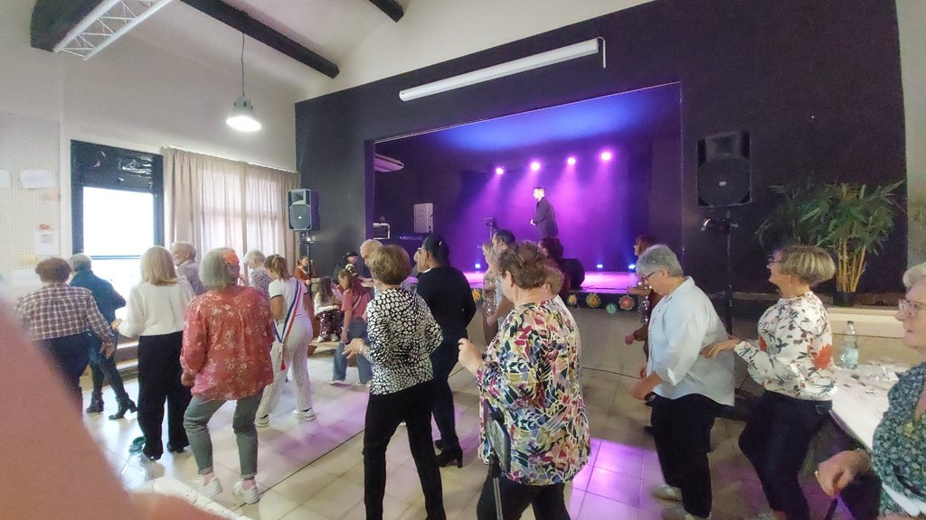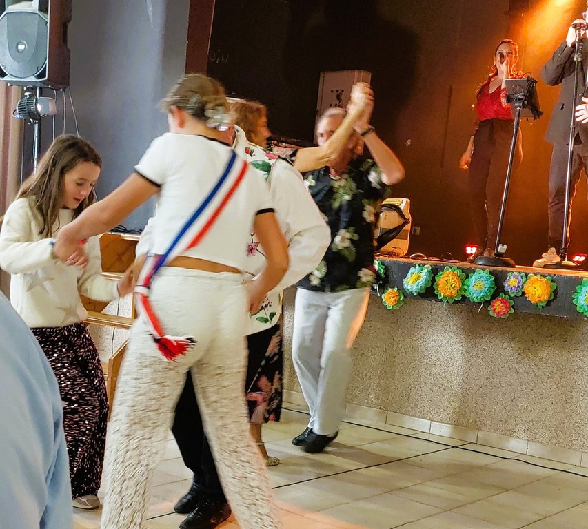 Dès le début du repas, et pour le plaisir de tous, l’orchestre Franck-M a régalé les convives avec des chansons magnifiquement interprétées ; très vite beaucoup de participants ont quitté leur table pour danser. Juste avant le dessert, le CMJ a présenté une danse qui a été très applaudie. Puis la piste a de nouveau été envahie par les danseurs qui ont été rejoints avec un plaisir évident par les jeunes du conseil municipal.